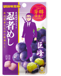 「忍者めし」は、忍者にとっての携帯食であった「兵糧丸」をコンセプトに日々、ストレスや時間に追われている現代忍者のために開発されました。現代版忍者食である「忍者めし」は素材の旨味を閉じ込めたハード食感で噛みごたえのあるグミです。よく噛むことで満腹感を得られるため、小腹満たしにも最適です。巨峰やラムネなどのラインナップを展開しています。
