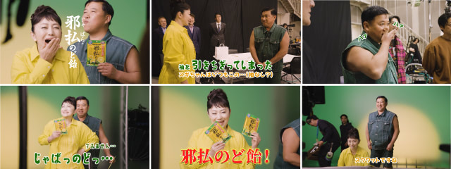 困った状況を打破するために石川さんが取り出したのは、「邪払のど飴󠄀」。一粒たべてすっきり!最後は2人の見事な掛け合いで「邪払のど飴󠄀」の清涼感をアピールします。