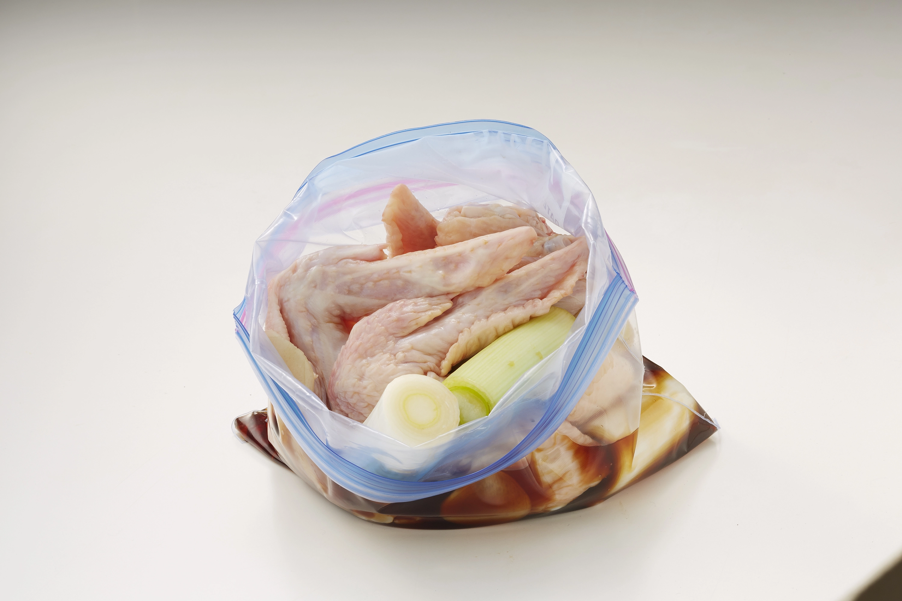 - ファスナー付き保存袋に<2>、<3>、純露、【A】を入れてよくもみ込み、冷蔵庫で1時間以上漬ける。