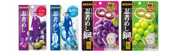 「忍者めし 巨峰」は、噛みしめるほど、ぶどう感が広がる味わいです。「忍者めし ラムネ」は、糖衣層にレモンエキスを入れ、ラムネの爽快感を感じられる味わいです。「忍者めし鋼」シリーズは、今年3月にリニューアル。「∞」型のグミで、従来の忍者めし鋼より「硬さマシマシ」でハードさがアップ!引き伸ばしたり、折りたたんだり、お口の中で無限に楽しめます。