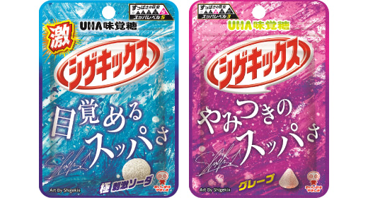 さらにシゲキックスからグレープ味が登場。くちどけの良いすっぱいクエン酸コーティングと噛むほどに甘さが出てくるハードグミがやみつきに!スッパレベルは3。