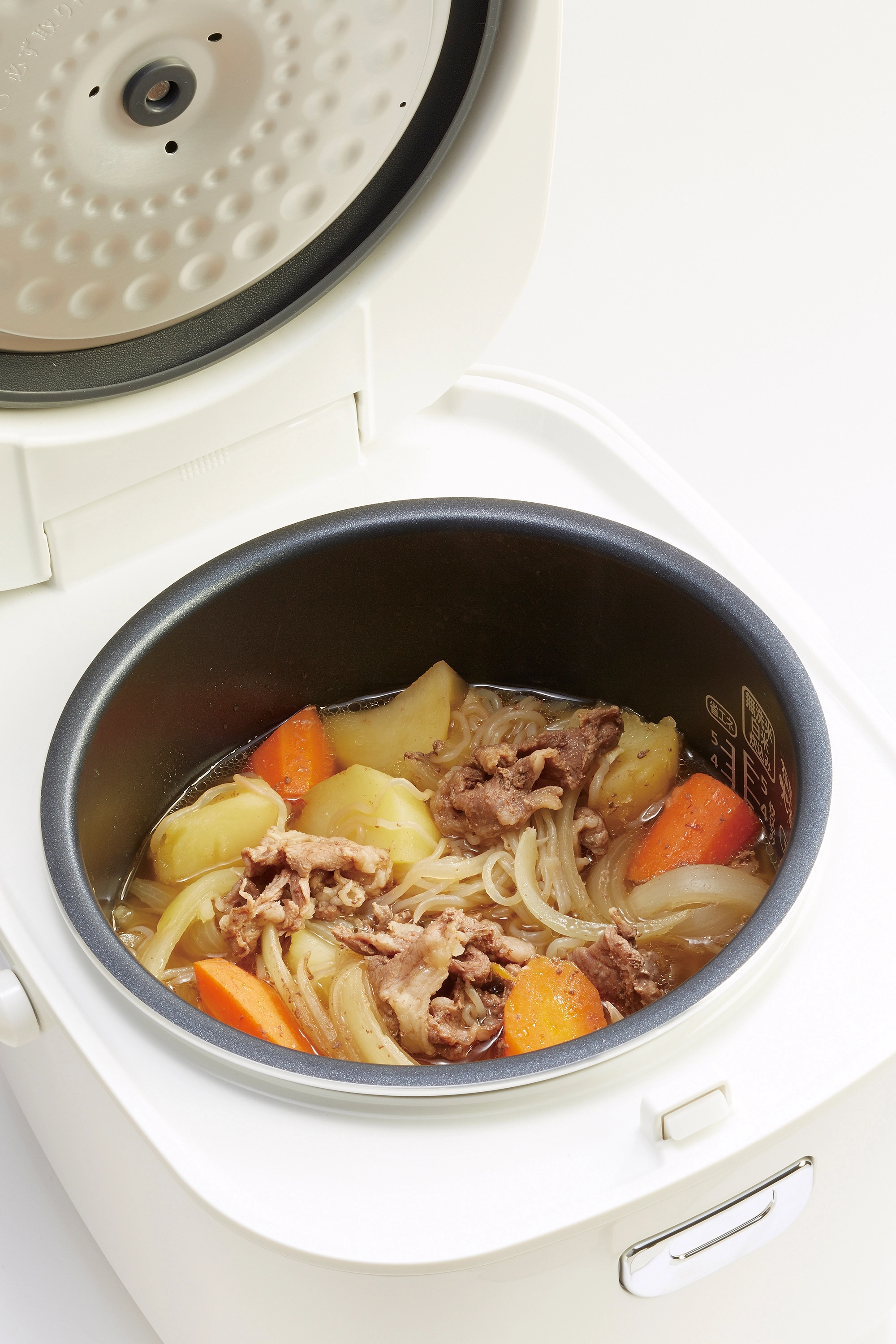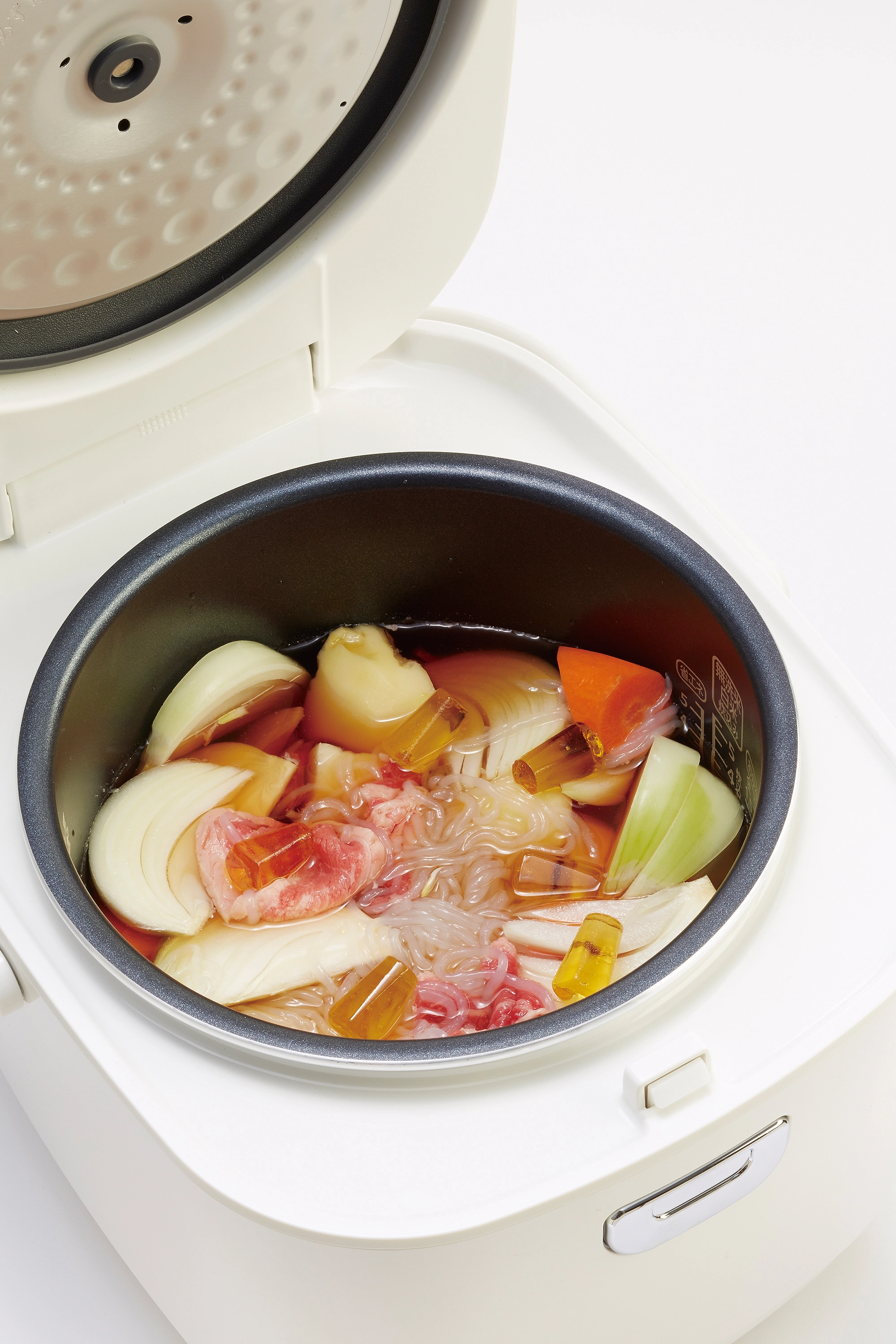 ご使用の炊飯器によっては炊飯以外の調理ができないものもあります。 ご使用の炊飯器の取り扱い説明書をよく読んでからお作りください。 調理する際は、噴きこぼれや焦げ付きに注意してください。