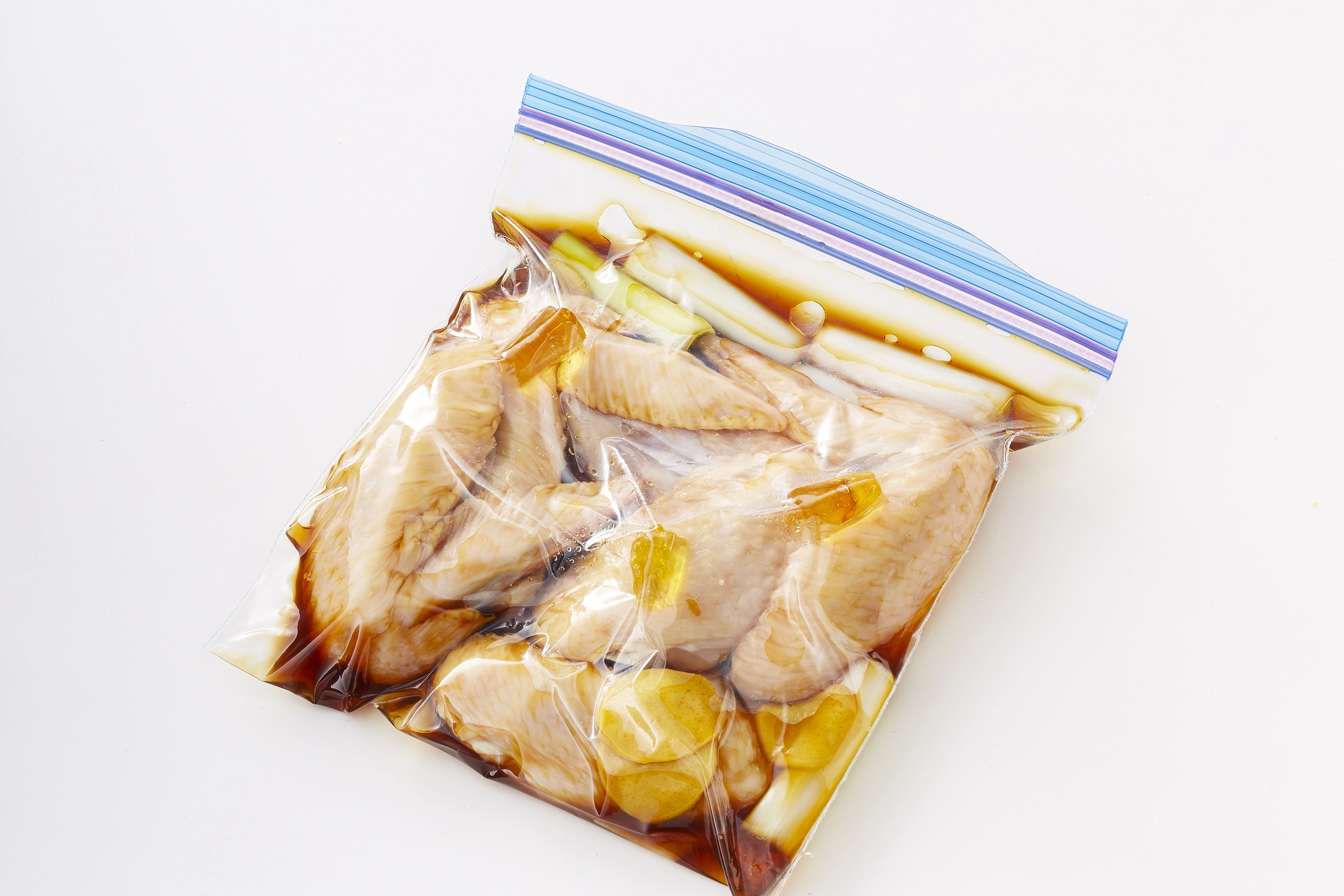 - ファスナー付き保存袋に<2>、<3>、純露、【A】を入れてよくもみ込み、冷蔵庫で1時間以上漬ける。